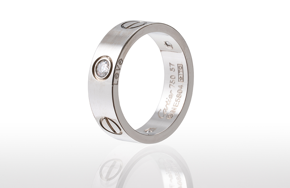 カルティエのジュエリーには内側に「Cartier」の筆記体ロゴ・品番・素材を示すホールマーク・シリアルナンバーが刻印されています。